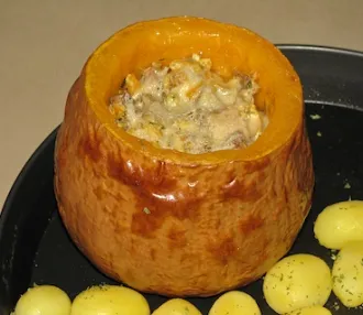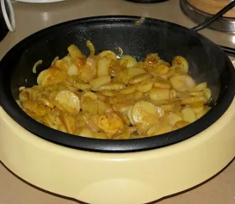 Karree gebraten mit Rosmarinerdäpfel und Zwiebelringen
