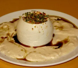 Vanilleflammerie mit Himbeer - Granatapfelsauce