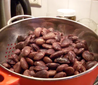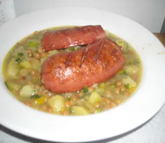 Käferbohnensuppe mit Schwarzbrotwürfel