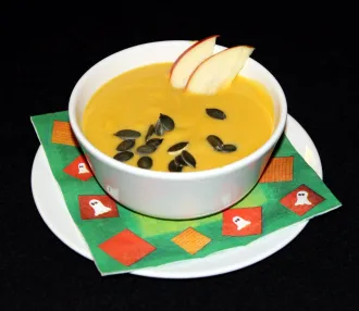 Zwiebelsuppe mit gerösteten Sonnenblumenkernen