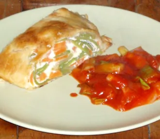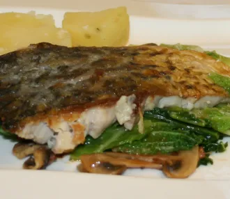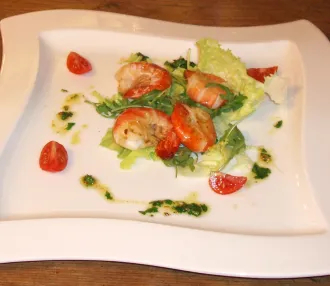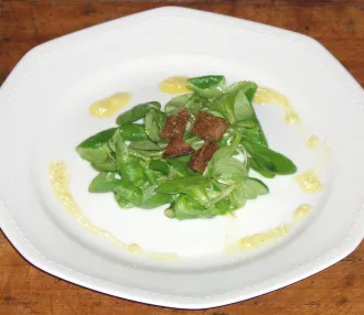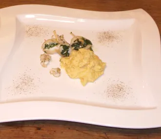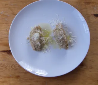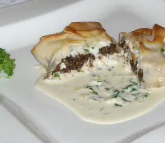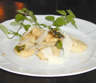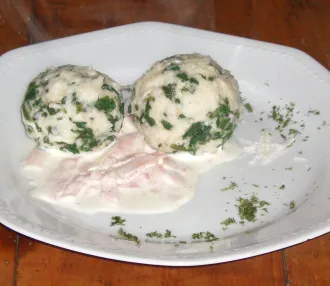 Mangoldtopfenknödel mit Schinkensahnesauce