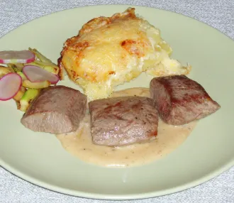 Lammfilet mit Schalottensauce und Erdäpfelgratin