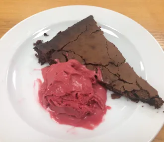 Schokoladentarte mit Himbeer-Kokos-Sorbet