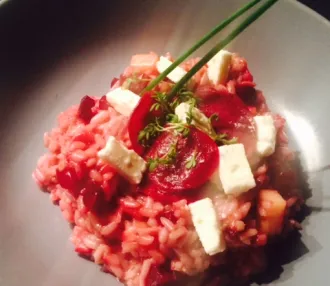 Rote Rüben Risotto mit Apfel