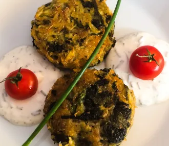 Erdäpfel- Spinat Laibchen mit Schnittlauchdip