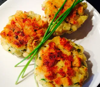 Fischerl mit Speck im Kartoffelnest