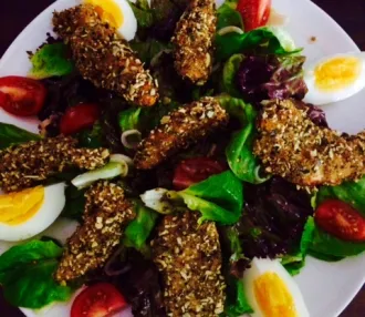 Hühnerstreifen in Kürbiskern Panade