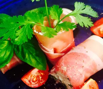 Basilikum Creme im Prosciuttomantel