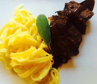 Geschmorte Rinderbacken ( Ochsenbackerl) in Schokolade- Portwein Sauce