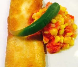 Zucchini Schnitzel mit Tomaten-Mais Gemüse