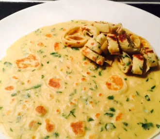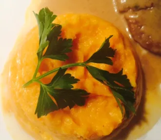 Sellerieschaumsuppe mit karamellisierten Karotten