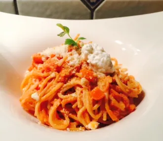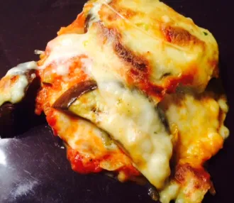 Pasta mit frittierten Melanzani, Tomaten und Mozzarella