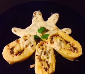 Kartoffel-Pilz Roulade mit Kräutersauce