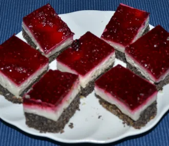 Mohn-Topfen-Schnitten mit Himbeerspiegel