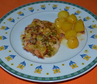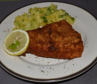 Gebackener Karpfen mit Kartoffel-Lauch-Gemüse