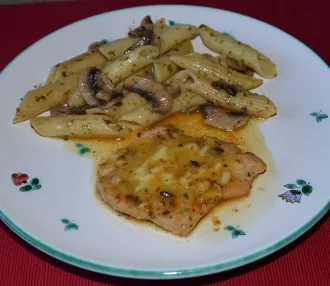Putenfleisch mit Chamlignons-Penne