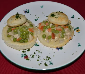 Eingemachtes Huhn im Blätterteigschüsserl