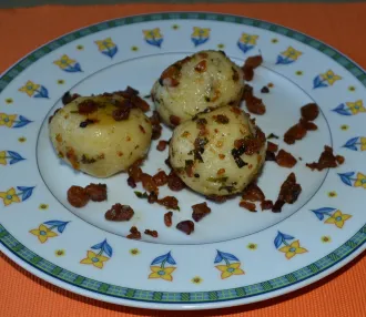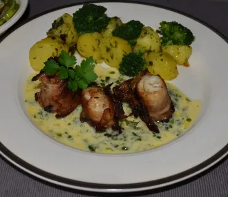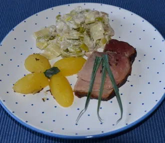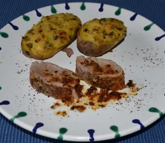Gebratenes Schweinsfilet mit gefüllten Kartoffeln