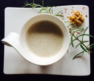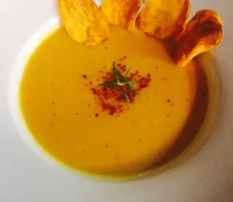Sellerieschaumsuppe mit karamellisierten Karotten