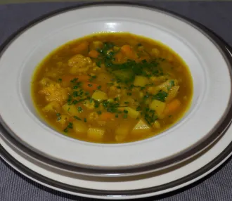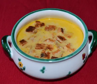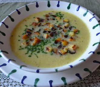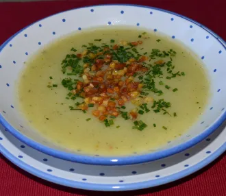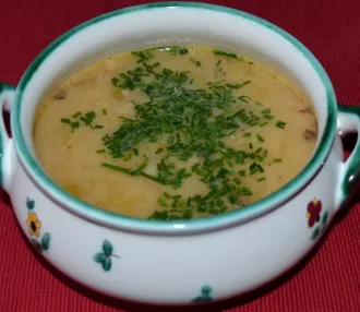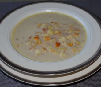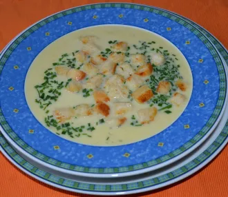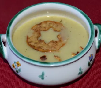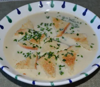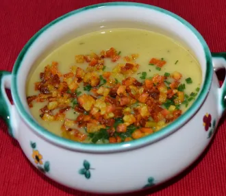 Kartoffelcremesuppe mit gerösteten Kartoffelwürferl