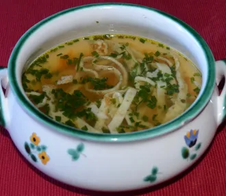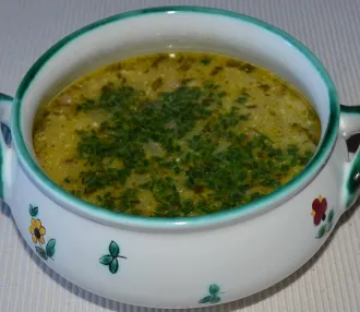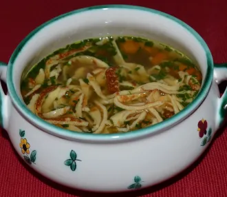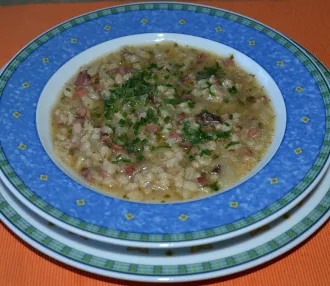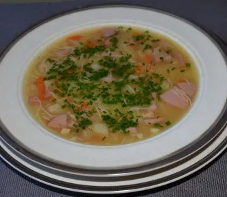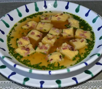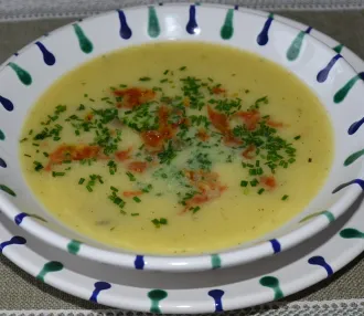 Kartoffelsuppe mit geröstenen Schinkenstreifen
