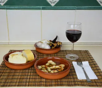 Wie wäre es zum Beispiel mit Albóndigas (Fleischklößchen),Boquerones en Vinagre (In Essig marinierte Sardellen),Ciruelas (mit Speck ummantelte und gebratene Pflaumen) oder Riñones (Nierchenscheiben in Weißweinsauce mit Knoblauch)?