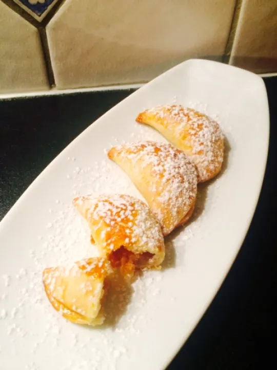 Die Apfeltaschen auf ein mit Backpapier belegtes Blech legen und nochmal mit Eigelb bestreichen.