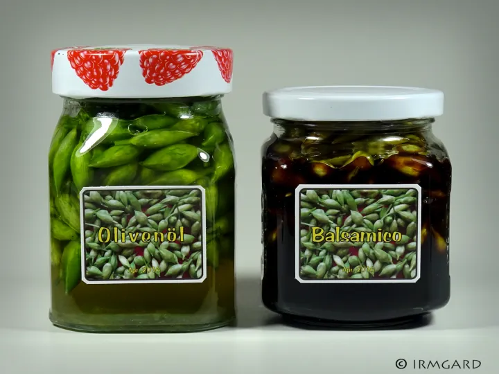 Essig, Wasser und Salz aufkochen, die Bärlauchknospen darin blanchieren, gut abtropfen lassen und in kleine Gläser füllen.