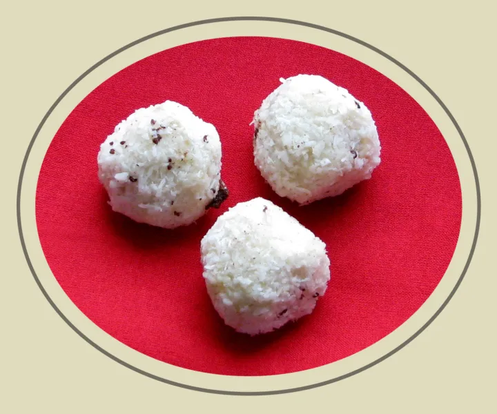Weiter abkühlen und dann kleine Kugeln formen, diese in Kokosette wälzen und das Konfekt kühl aufbewahren.