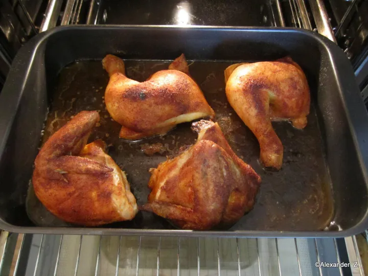Danach mit dem Brathuhngewürz auf allen Seiten gut einwürzen, mit etwas Suppe (ca. 200ml) aufgießen und bei 170°C, Ober- und Unterhitze in Rohr geben.