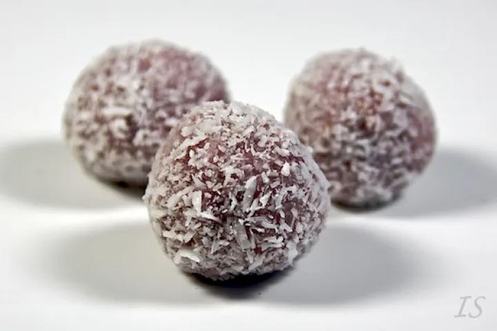 Aus der überkühlten Masse kleine Kugeln formen und diese in Kokosett wälzen.