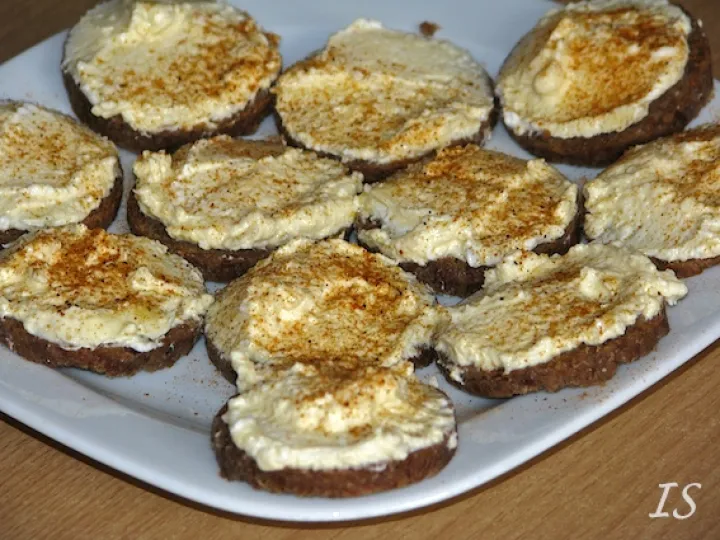 Butter cremig rühren, Topfen und Rahm untermischen.