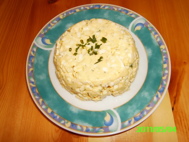Die Eier zerkleinern Sauce Tartare,Schnittlauch zugeben