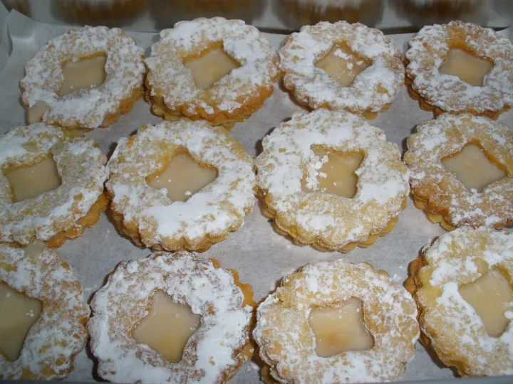 Den Boden mit Fülle bestrechen, den Deckel in Staubzucker wälzen und anschließend zusammen setzen.