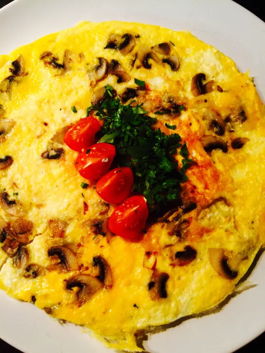 Wenn das Omelett auf der Unterseite schön braun ist, dann vorsichtig wenden und bei ausgeschalteter Herdplatte gar ziehen lassen.