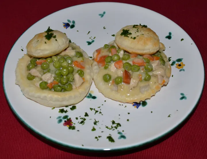 und die kleinen Blätterteigscheiben als Deckel aufsetzen.