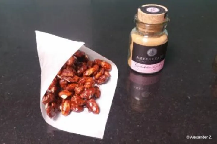 Rum, Zucker Gewürzmischung und etwas Vanille Extrakt vermischen. Die Mandeln in einer beschichteten Pfanne leicht erwärmen und das Gemisch über die Nüsse verteilen. Wenn sich die Flüssigkeit einreduziert hat muss man mit dem ständigem rühren beginne. Der Zucker beginnt sich zu karamellisieren. Wenn alle Mandel glänzen sin sie fertig und können auf einen Backpapier auskühlen.