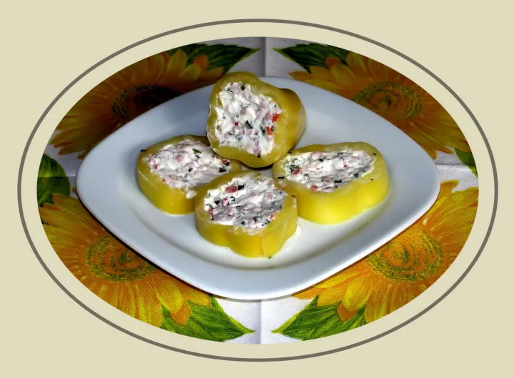 Die Masse in die Spitzpaprika füllen, und ca. 1 Std. kalt stellen.