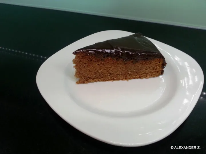Nach der Backzeit die Torte aus dem Rohr nehmen, das Kaffee-Rum-Gemisch über die noch heiße Torte träufeln und die Torte auskühlen lassen. Die Schüssel mit dem Obers und der Schokolade zwischenzeitlich im ausgeschalteten Backrohr zergehen lassen.