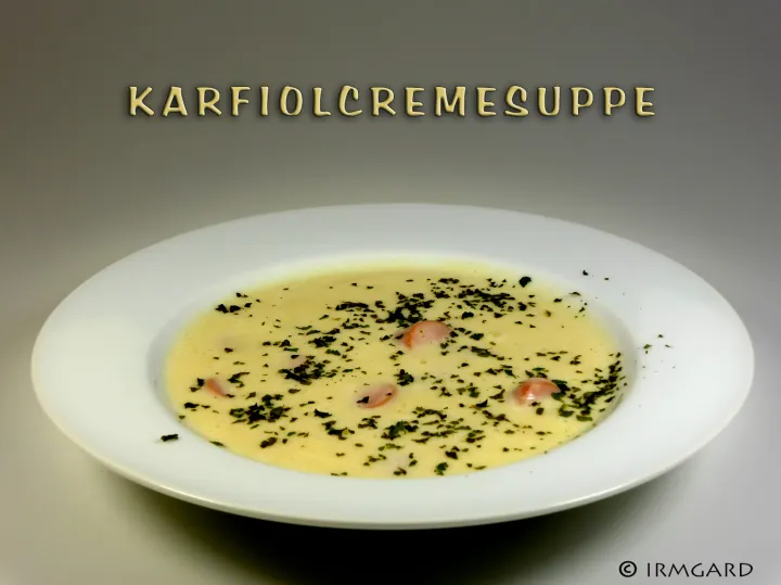 Die Karfiolrose zerteilen und in der Gemüsesuppe weich kochen.
