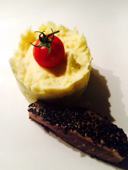 Dieses Kartoffel - Gericht passt zu fast allem als Beilage, ich habe es zu meinem kurz gebratenen Thunfisch in Sesamkruste serviert.