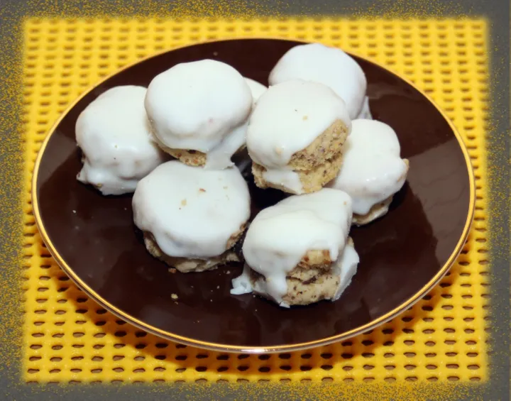 Nach dem Auskühlen mit Kastanienreis zusammensetzen und mit Vanilleglasur (Staubzucker mit Vanilleextrakt und etwas Wasser verrühren) bestreichen.
