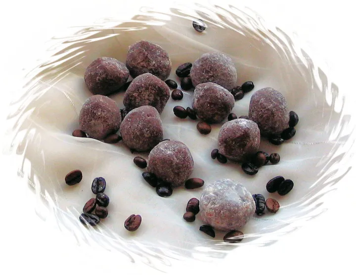 Aus dieser Masse kleine Kugeln formen, in Staubzucker wälzen und trocknen lassen.