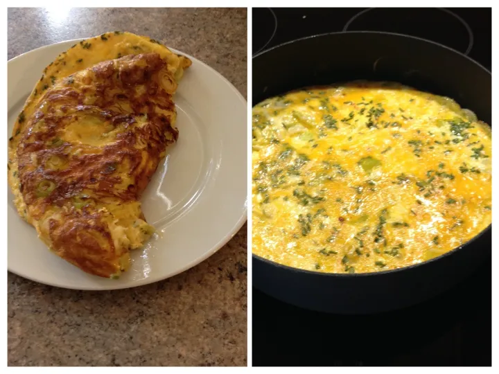 Eine Pfanne mit der Hälfte der Butter ordentlich einfetten, die Eimasse hineingießen und etwas anbacken lassen. Sobald nur noch die Oberfläche feucht ist, den Schnittlauch darüber streuen, dann das Omelett zur Hälfte überschlagen. Den Rest der Butter beigeben, das Omelett auf der unteren Seite noch leicht braun backen. Mit etwas Schnittlauch garnieren und rasch auftragen.