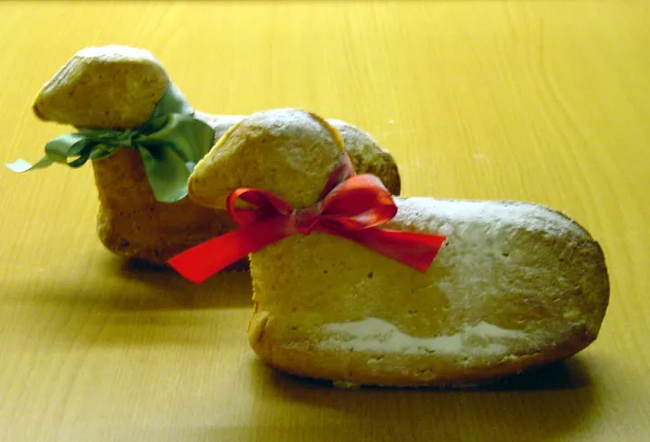 Osterlamm aus dem Backofen nehmen, etwa 10 Minuten rasten lassen. Die Form abnehmen und mit Staubzucker bestreuen.