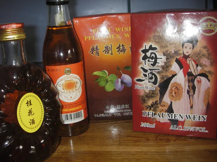 Diesen Pflaumenwein oder Likör erhält man oft beim Chinesen, wenn man dort Essen geht. Ich mag ihn nicht trinken, weil er mir zu süß ist, also mache ich daraus Essig. Man kann natürlich auch aus anderen Likören Essig machen. Wichtig ist nur, dass der Likör oder Wein auf 5 bis maximal 10% Alkoholgehalt verdünnt wird.