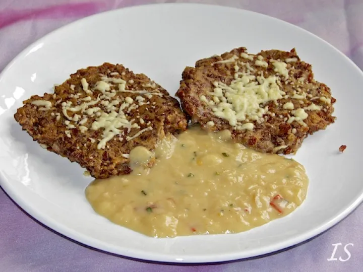 Aus der Masse Laibchen formen und das Öl in einer Pfanne erhitzen. Darin die Laibchen knusprig braten. Kurz vor dem Servieren den Emmentaler über die Laibchen streuen.