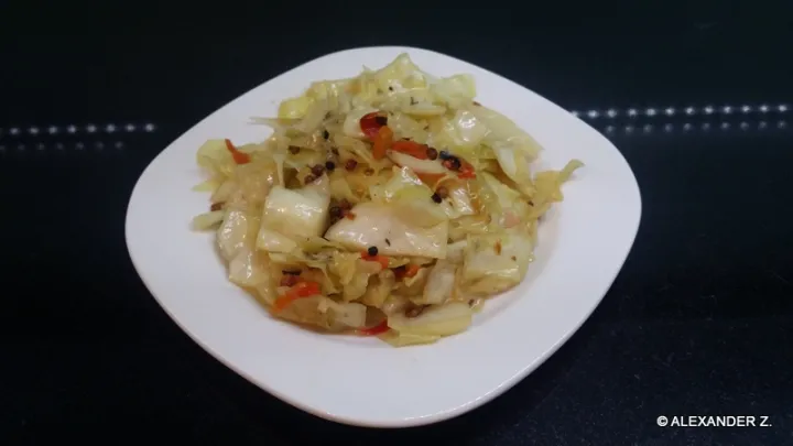 Sesamöl, Essig und Zucker zu einer Marinade rühren. Die Marinade der Pfanne beimengen und solange rühren bis der Kohl bissfest ist.