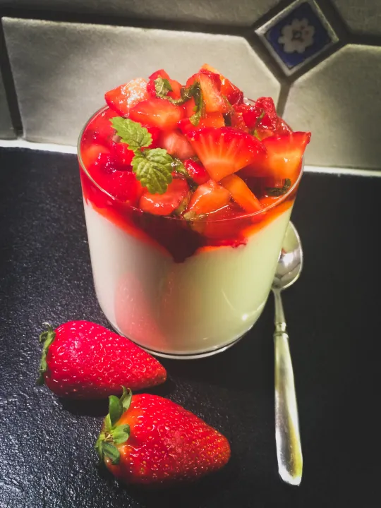 Erdbeeren mit den angegebenen Zutaten vermengen. Hier ist es eine reine Geschmacksfrage, ob man die Minze verwendet oder mit dem Basilikum eine vielleicht neue Idee versucht...