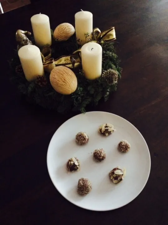 Obers aufkochen und vorsichtig die Kuvertüre darin schmelzen. Abkühlen lassen. Nüsse in einer Pfanne ohne Fett ein wenig anrösten. Dann die Nüsse, den Rum, die Butter und den Kakao mit der Schoko- Masse vermengen. Diese Masse für einige Stunden kalt stellen. Kleine Mengen ausstechen und mit feuchten Händen zu dekorativen Kugeln rollen. Dann in den Mandelsplittern oder auch in geriebenen Nüssen wälzen und in Papiermanschetten aufbewahren. Die Schoko- Rum Kugeln halten ca. 2 Wochen im Kühlschrank.